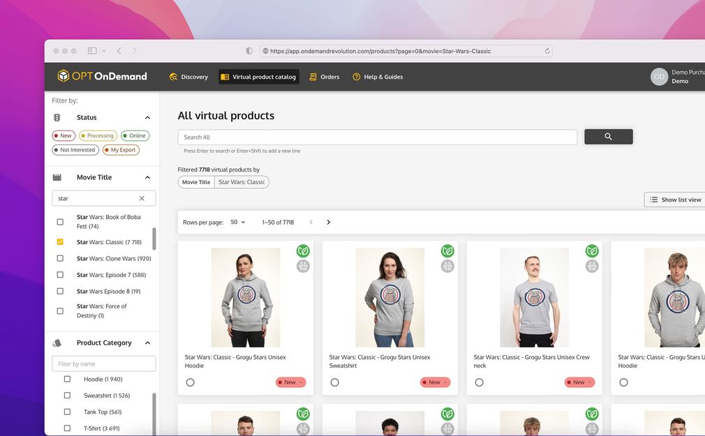 V OPT OnDemand měníme dodavatelský řetězec textilního potisku na zakázku (Print On Demand) do nové digitální doby. Co to znamená v praxi? Potisk motivů na trika na zakázku už není jen pro festivaly a školní akce, dostává se do retailu jako běžné textilní zboží. Místo tun nevyužitého a dopředu potištěného textilu každým rokem se na trh dostává pouze zboží, které bylo opravdu objednáno zákazníkem. S tím jsou spojené velké logistické a provozní výzvy, abychom zabezpečili včasný termín dodání, za minimální náklady v nejlepší možné kvalitě.